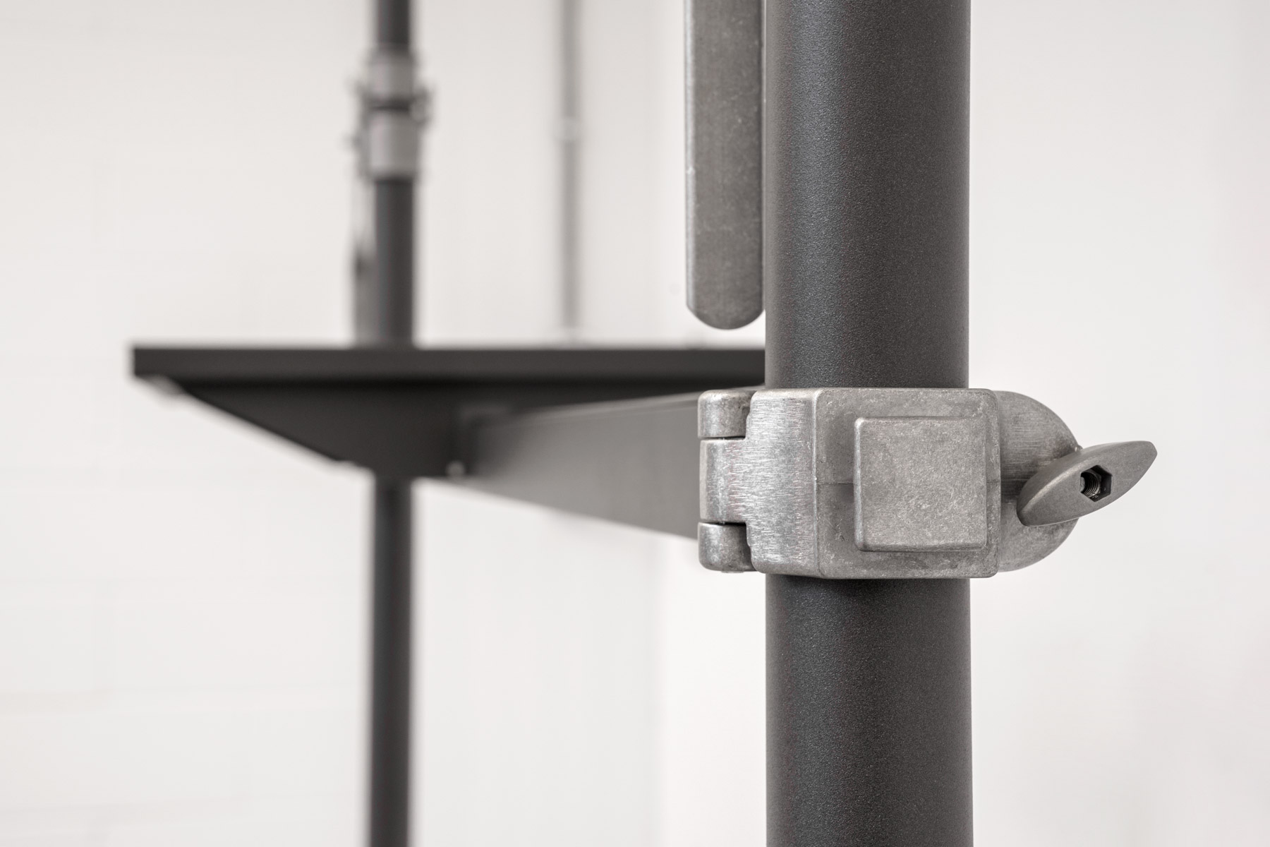 AUTOPOLE is a telescopic, tension mounted, freestanding pole, secured with a simple lever movement. With a wide range of connectors and accessories that permit full flexibility and infinite visual solutions: it can be used to display, hold, and communicate with 360° potential. The system’s fundamental characteristic is the quickness with which it can be assembled without the need for tools. Autopole is available in silver anodized aluminum, black anodized and dark grey painted finish. ALU’s AUTOPOLE is one of the best-selling fixtures within the retail sector, and continues to be a product icon in the photographic world.