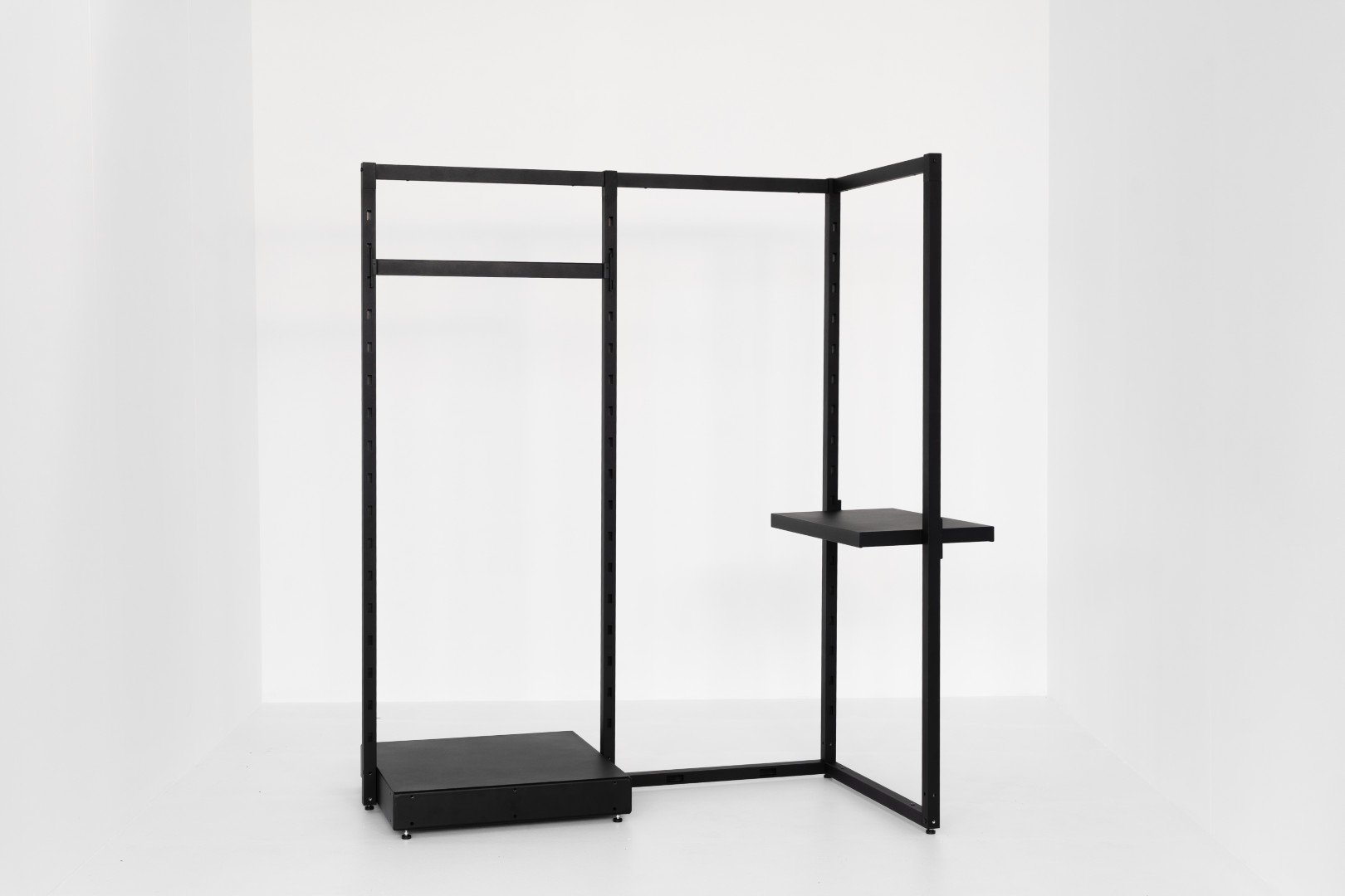 Its thinner horizontal tube bridges the gap between the two vertical uprights, facilitating direct hanging of items or attachment of accessories such as insert shelves.