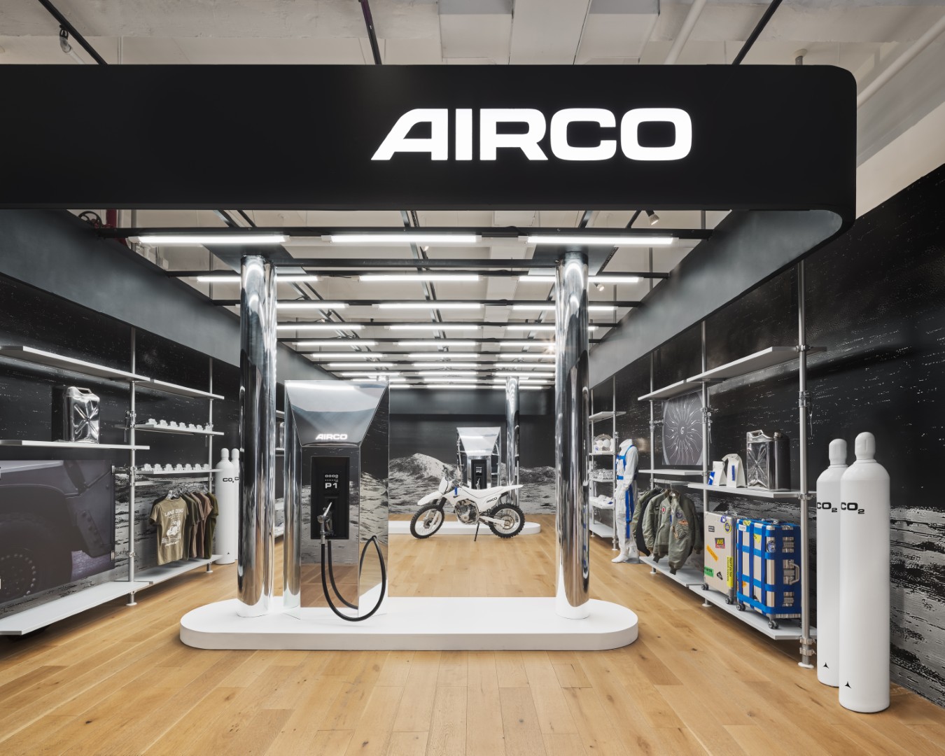 Designed in collaboration with Mythology, the space invites visitors to explore how AIRCO’s AIRMADE® Fuel can power everything from motocross bikes to jets and even spaceships.