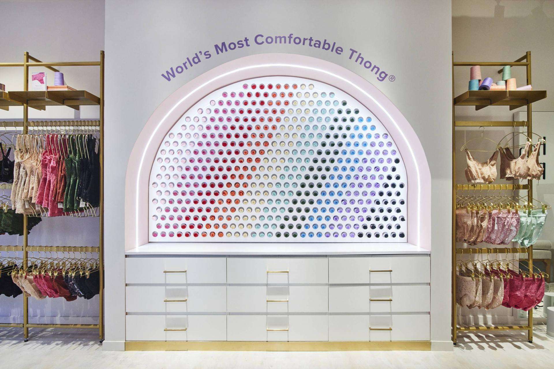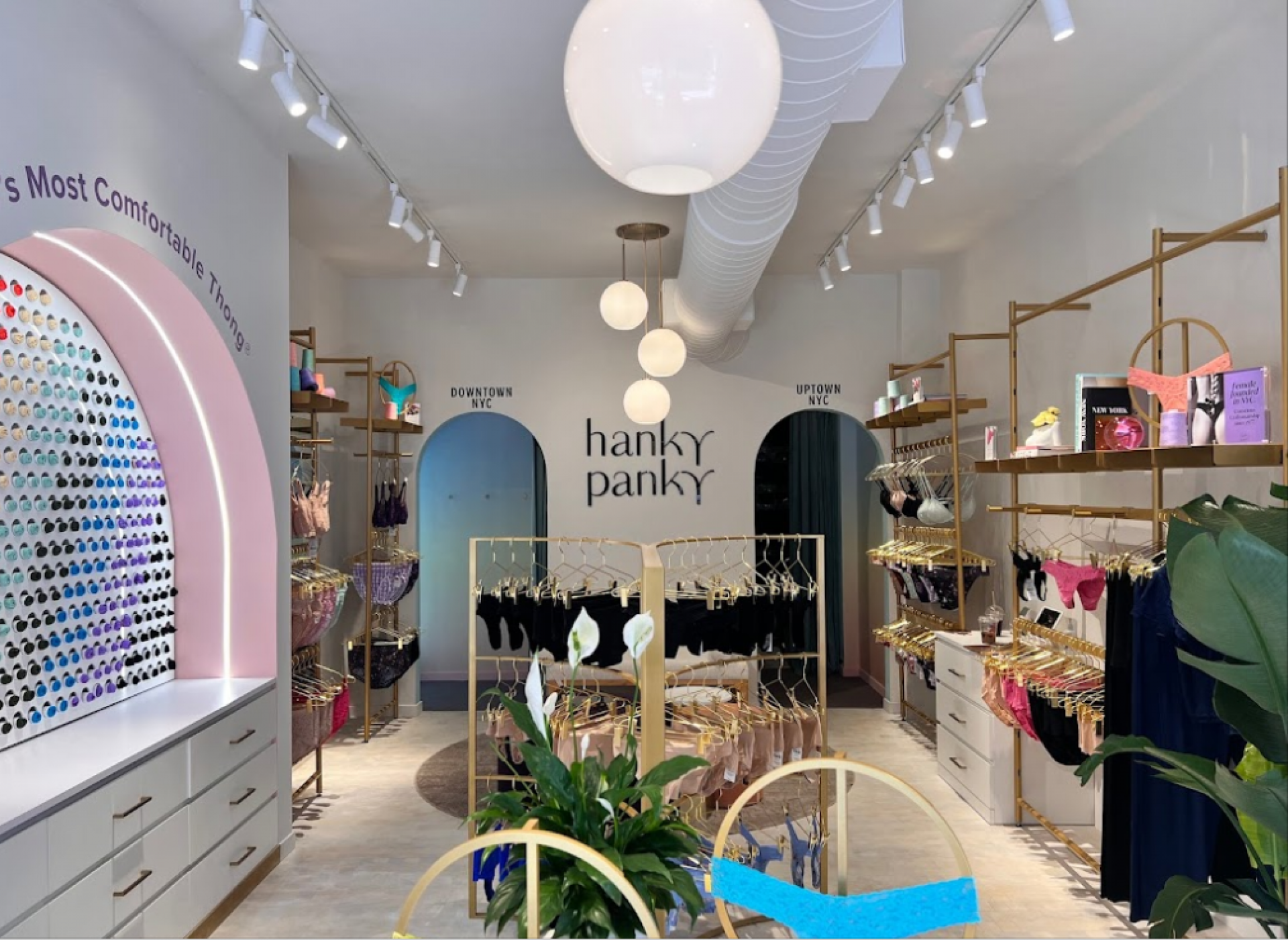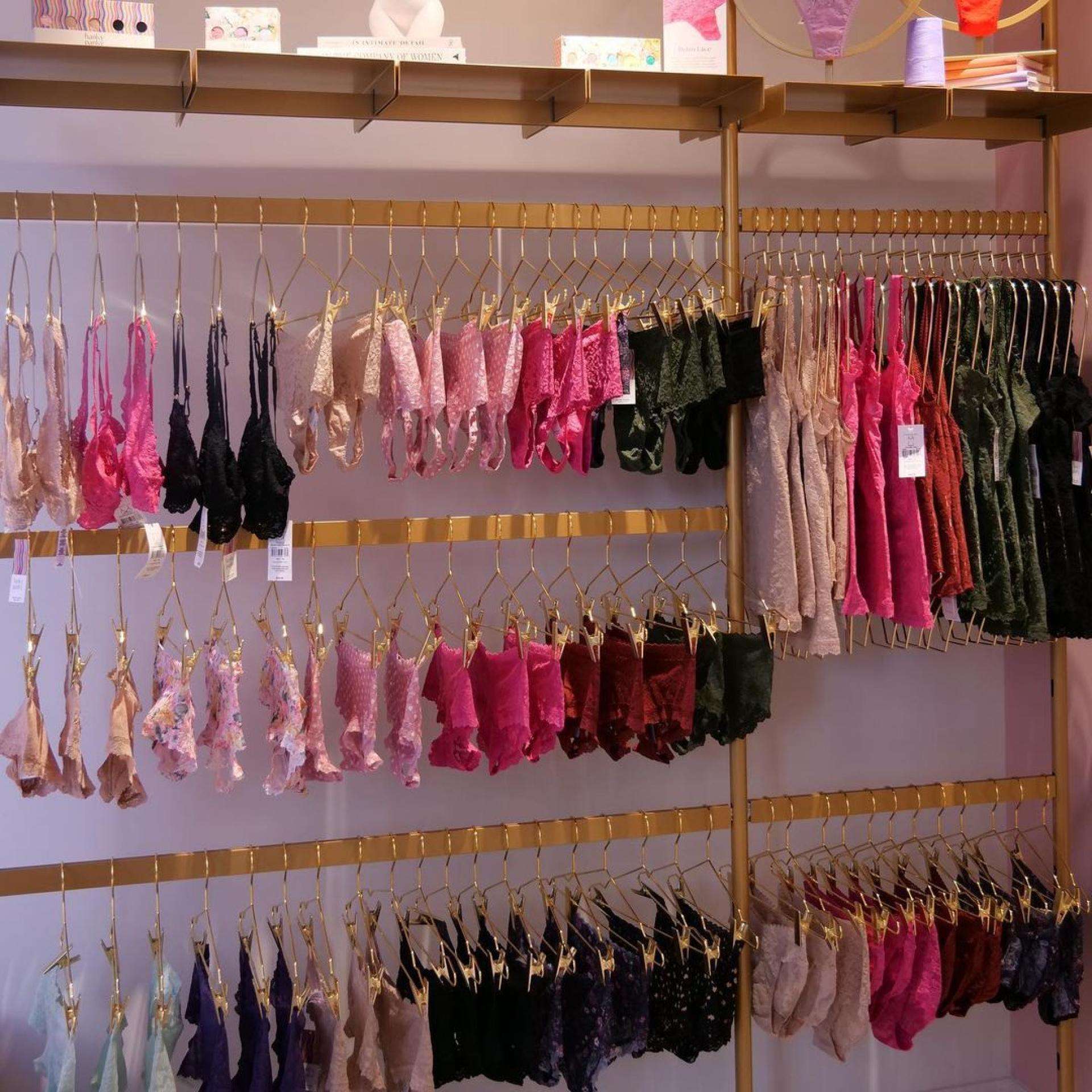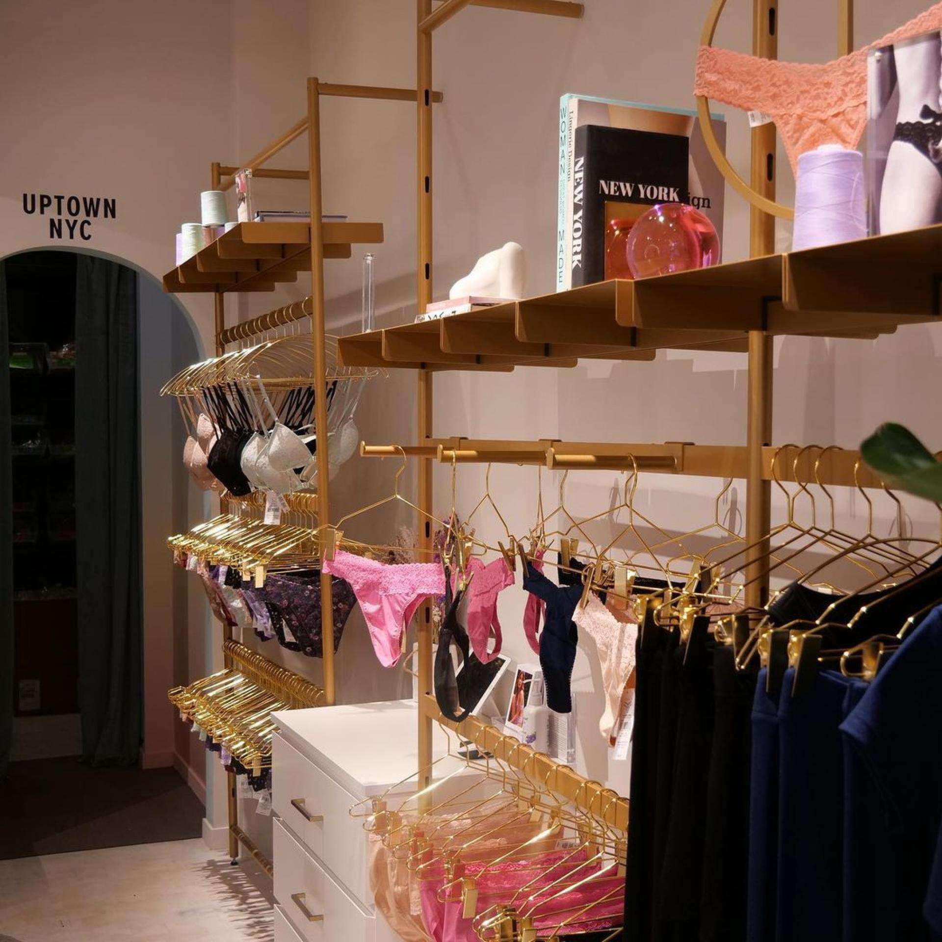 ALU partnered with Leap for the opening of Hanky Panky’s first brick-and-mortar store, located at 370 Bleecker Street in Manhattan’s West Village. The lingerie and sleepwear brand decided to open a physical storefront to extend its brand to in-person shopping. The 600 square feet store is covered with a customized version of Plot powder coated in gold, which highlights the range of bold colors and prints of the products. The NY store offers an assortment of special occasions and a selection of new silhouettes displayed on Plot vertical wall mounted units with cross bars and insert shelves.