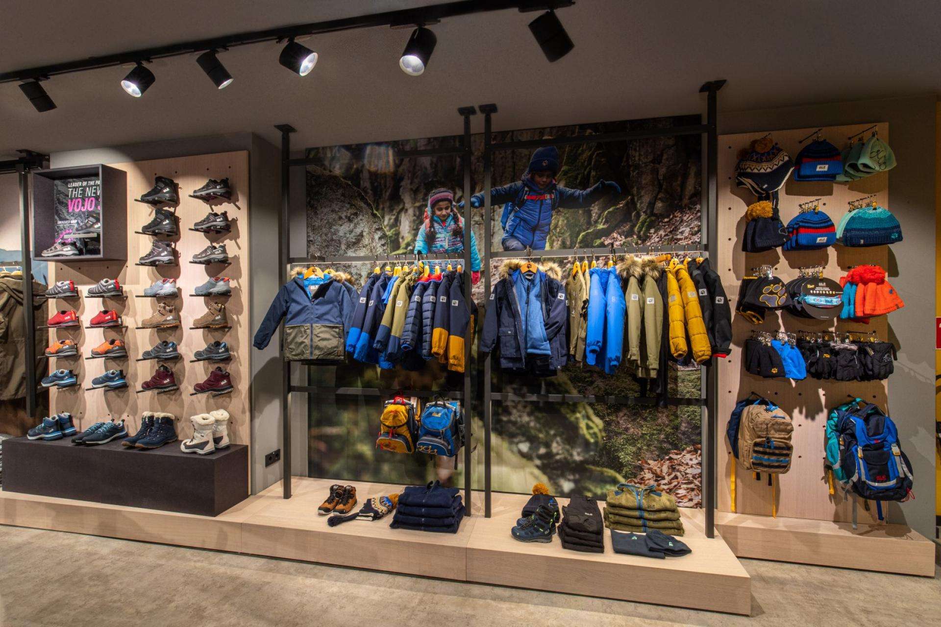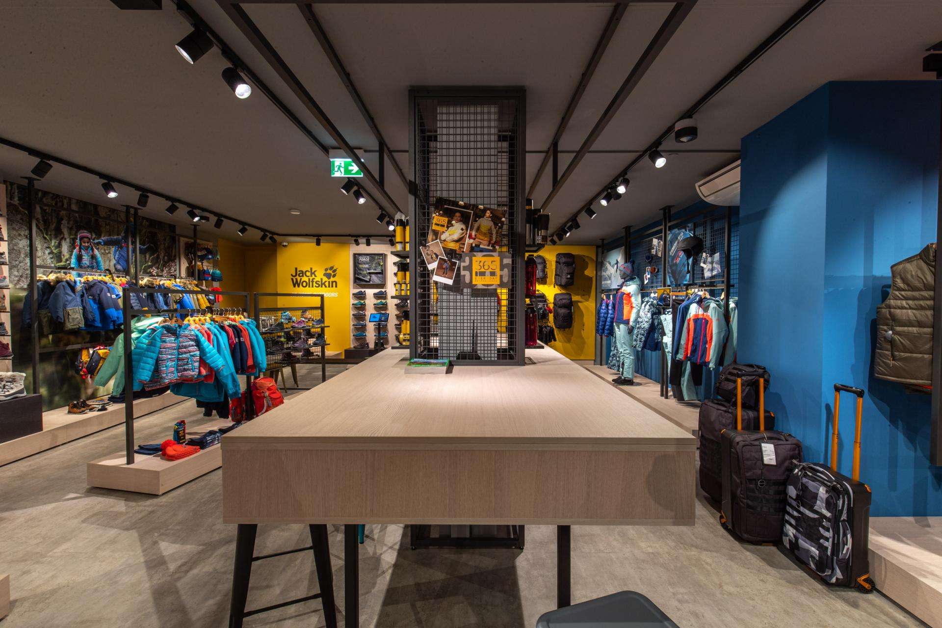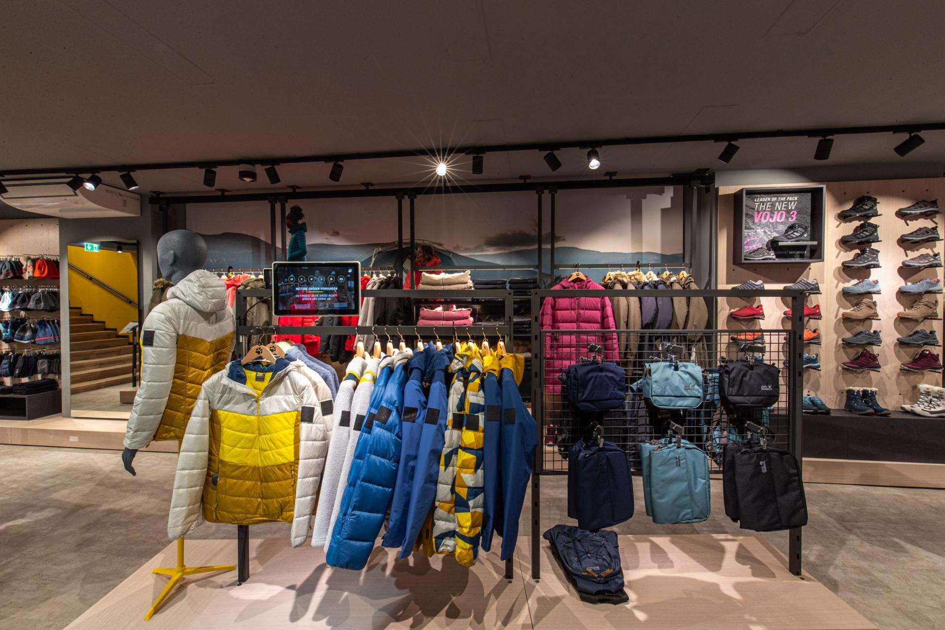 Jack Wolfskin opened a pilot store with their new concept. The 260 sqm space in Düsseldorf reflects the outdoor lifestyle brand in its design and visuals. Jack Wolfskin created this space with sustainability in mind. This project has been made in partnership with ALU German reseller, Jakobs.