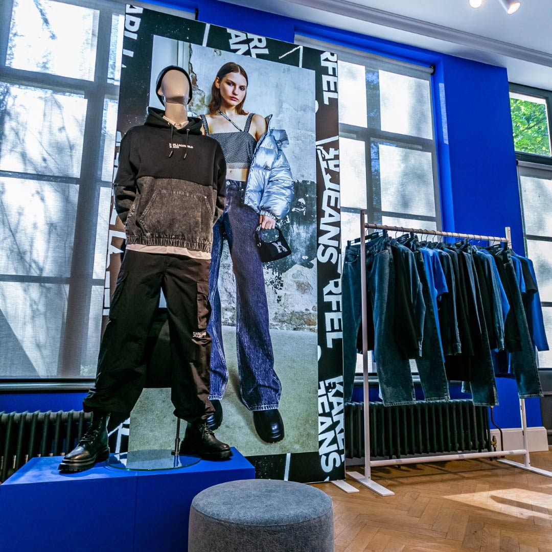 In April 2023 in Amsterdam, a remarkable collaboration unfolded when ALU joined forces with the iconic Karl Lagerfeld by converting a former marketing office into a fully functional showroom for their new brand: KARL LAGERFLED JEANS.