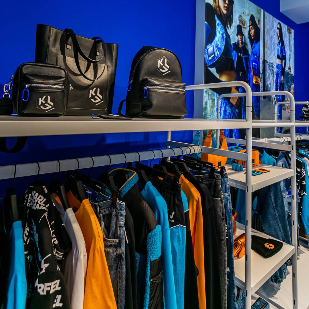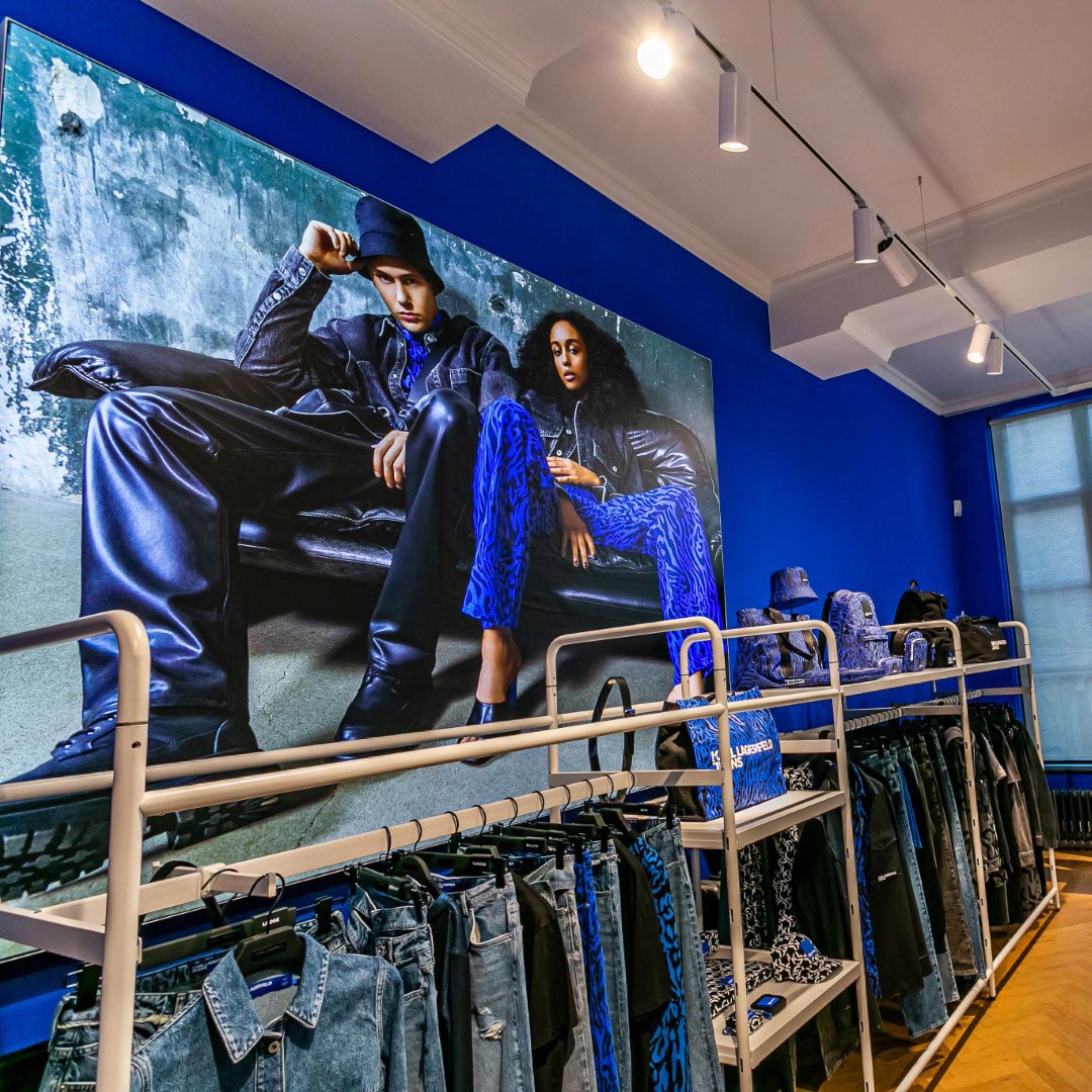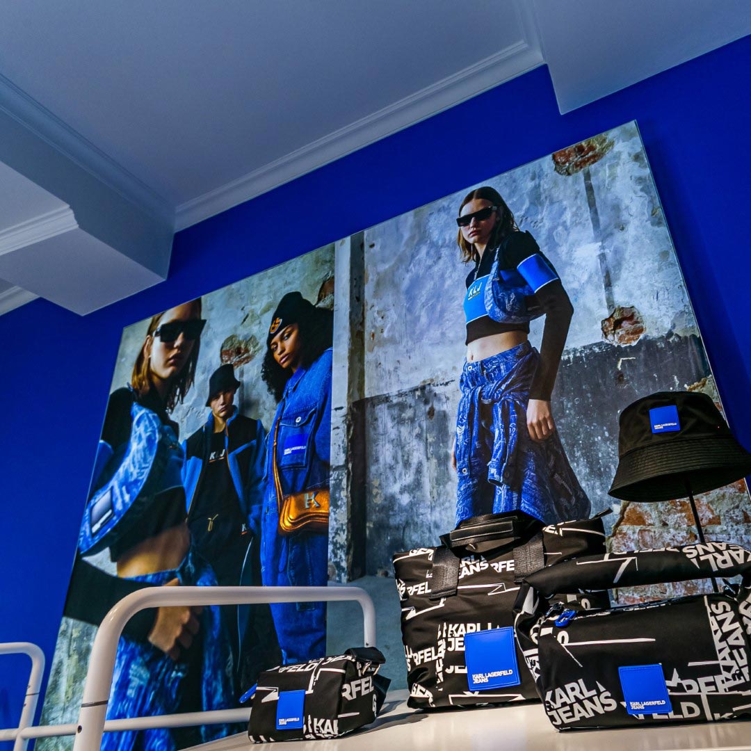 The design is a testament to the strong brand experience KARL LAGERFLED JEANS sought to create. It is a celebration of the bold individuality of GenZ, characterized by a rebellious and positive spirit. Visitors are greeted by a dynamic and youthful atmosphere, where the dominant colors of blue and white set the stage for an immersive experience.