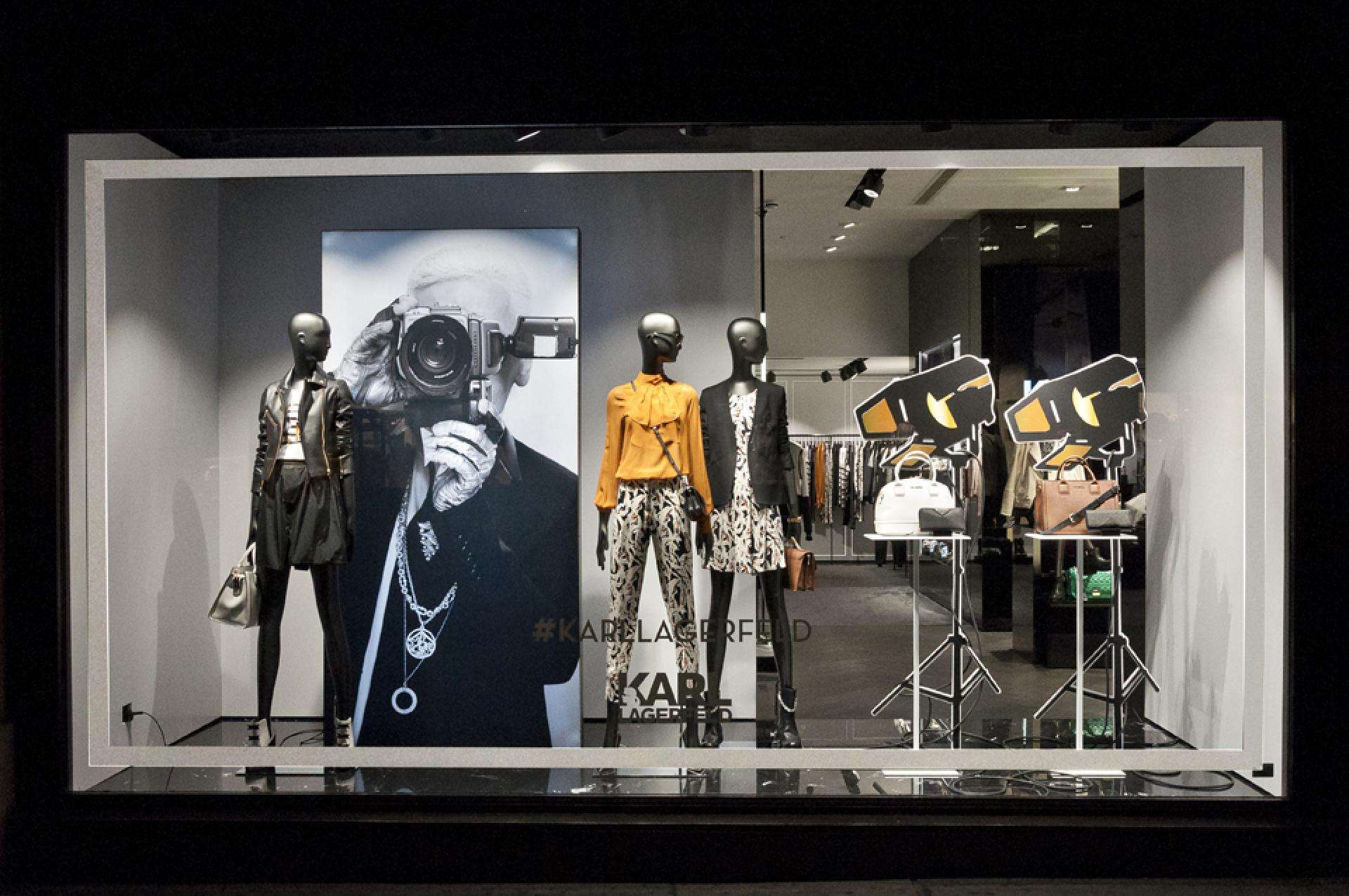 Inspired by societies’ need for documenting our lives with pictures, ALU LIGHTBOARD is used in the latest Karl Lagerfeld IKONIK windows in London and Munich to display the FW 2015 collection. Using the latest LED technology, LIGHTBOARD illuminates an image of Karl taking a photo, recognizable through Karl’s signature gloves, black attire and styled hair.