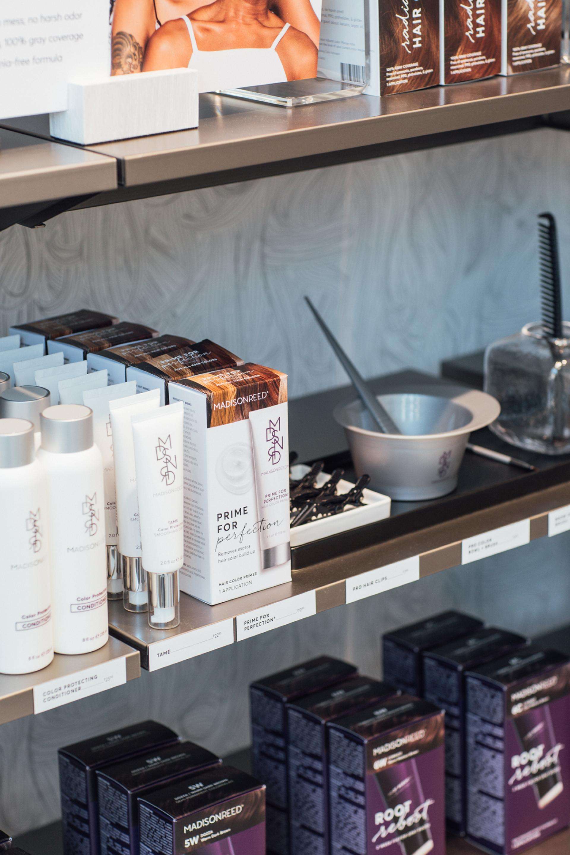 Originally an online hair color company, Madison Reed, recently revamped their color bar in New York City using Alu System. Wall mounted SLASH in raw steel is used to display an array of hair care products and accessories within the Madison Reed store environment.