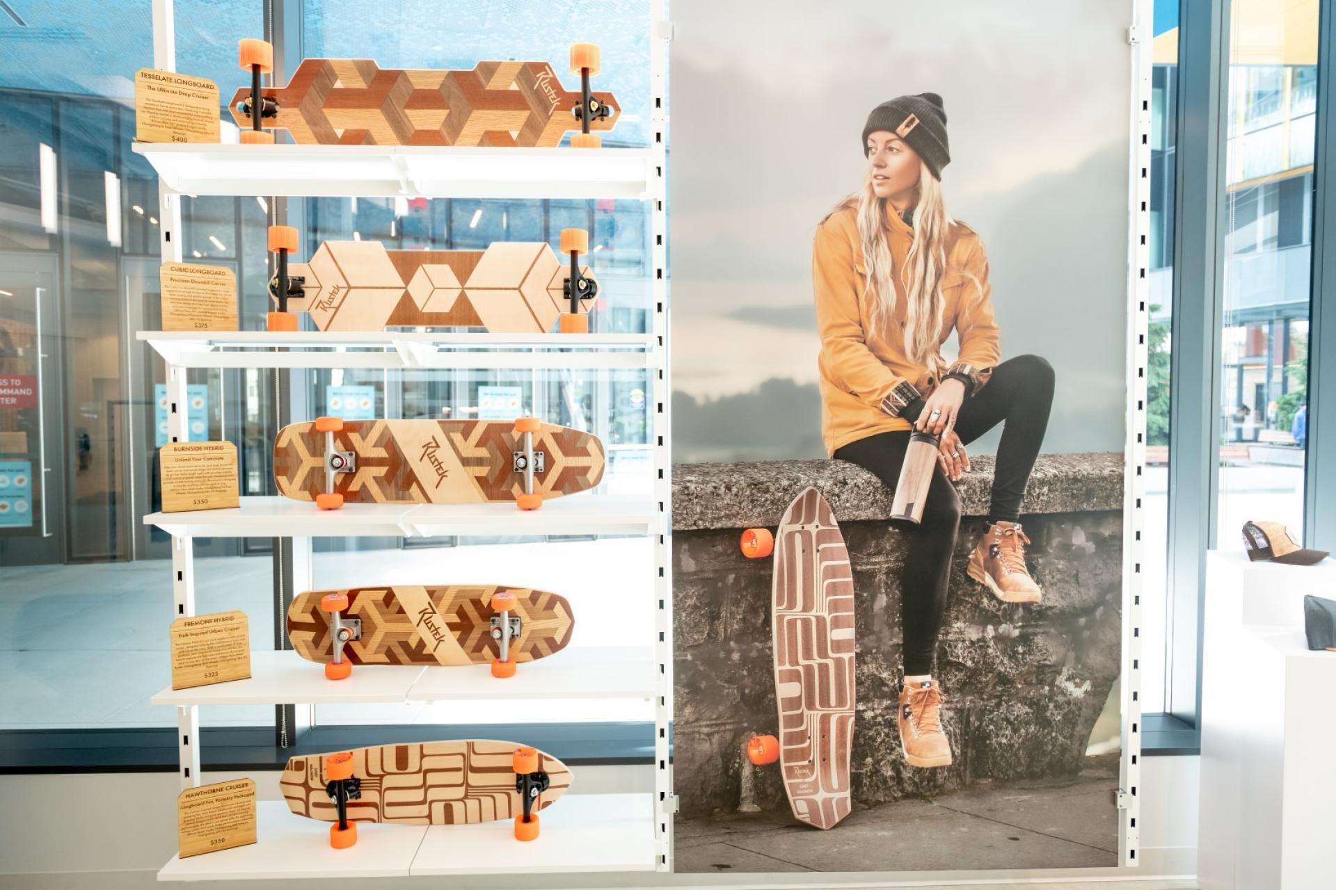 The Periodic Shop is a permanent pop-up shop in Seattle. Permanent pop-up sounds like a paradox but is a real concept brought to life by The Lionesque Group, headed by MG2’s Melissa Gonzalez. ALU loves working with Lionesque on projects. They leverage the strengths of ALU systems to their maximum potential. This is exhibited more than anywhere else in Periodic where the shop stays in the same place, but the layout changes with each new brand. Lionesque carefully selected ALU for this concept due to the flexibility, durability, and ability of ALU fixtures to convey many themes and messages. Easily moved, changed, and accessorized, they can be reused and adapted creating a new space with each change of brand and merchandise, rather than continually replacing the framework each time. More and more agencies such as Lionesque are making even more sustainability efforts and focusing on sourcing sustainable materials which is, in part, what made ALU an ideal partner for this role in Periodic.