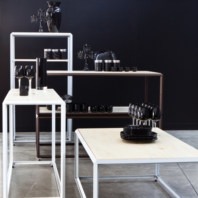 With an interest in modern, straight forward designs and objects, Qwstion incorporated ALU AUTOPOLE in black to bring a unique identity to the displays. Large black domes branch off from the AUTOPOLE, transforming it into a lighting fixture as well. A featured black CAGE stands at the front of the store. Altogether, the black fixtures create a balancing act against the predominantly white space. Based on Qwstion’s needs for versatility, ALU provided quality display solutions that will grow and adapt with the store.