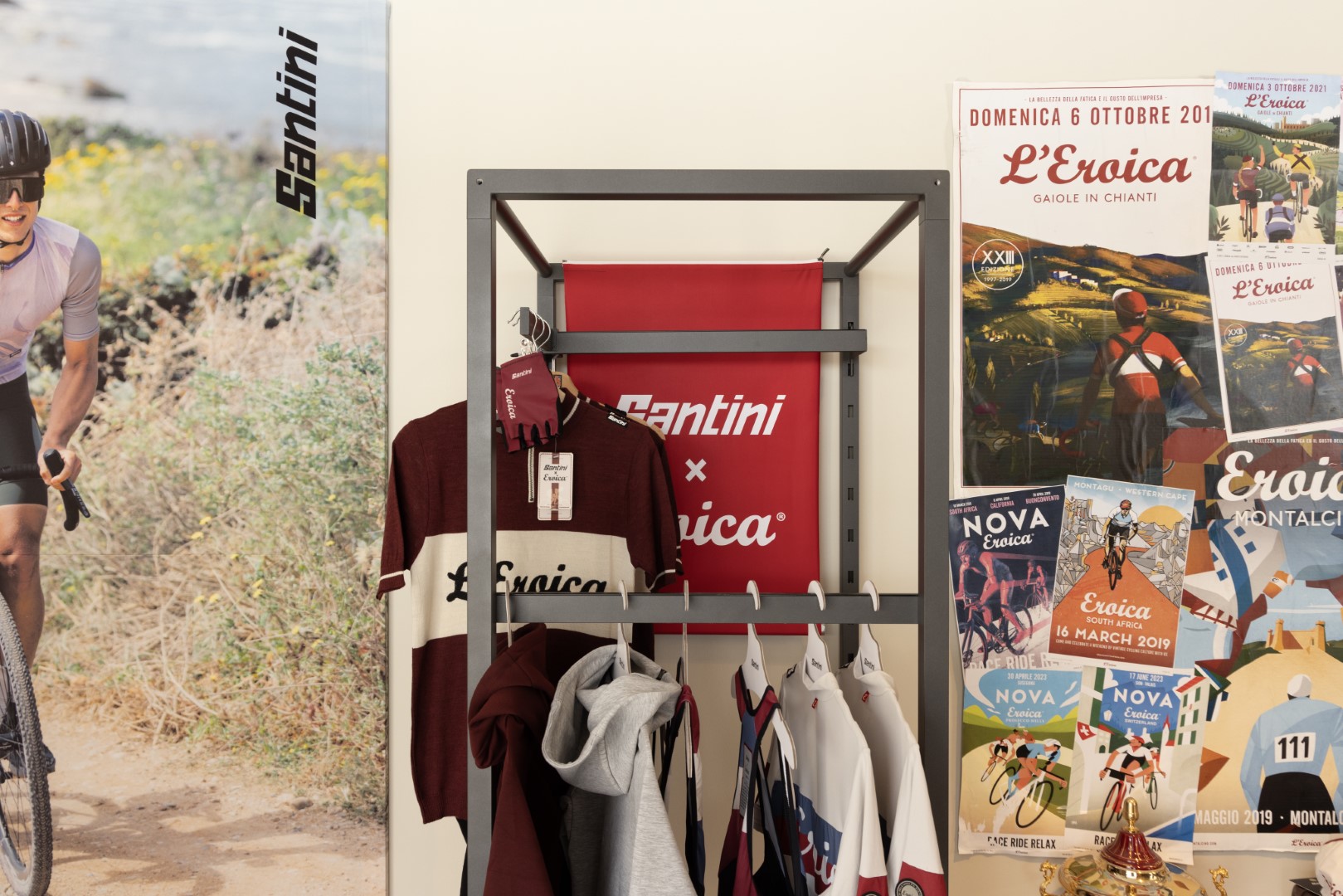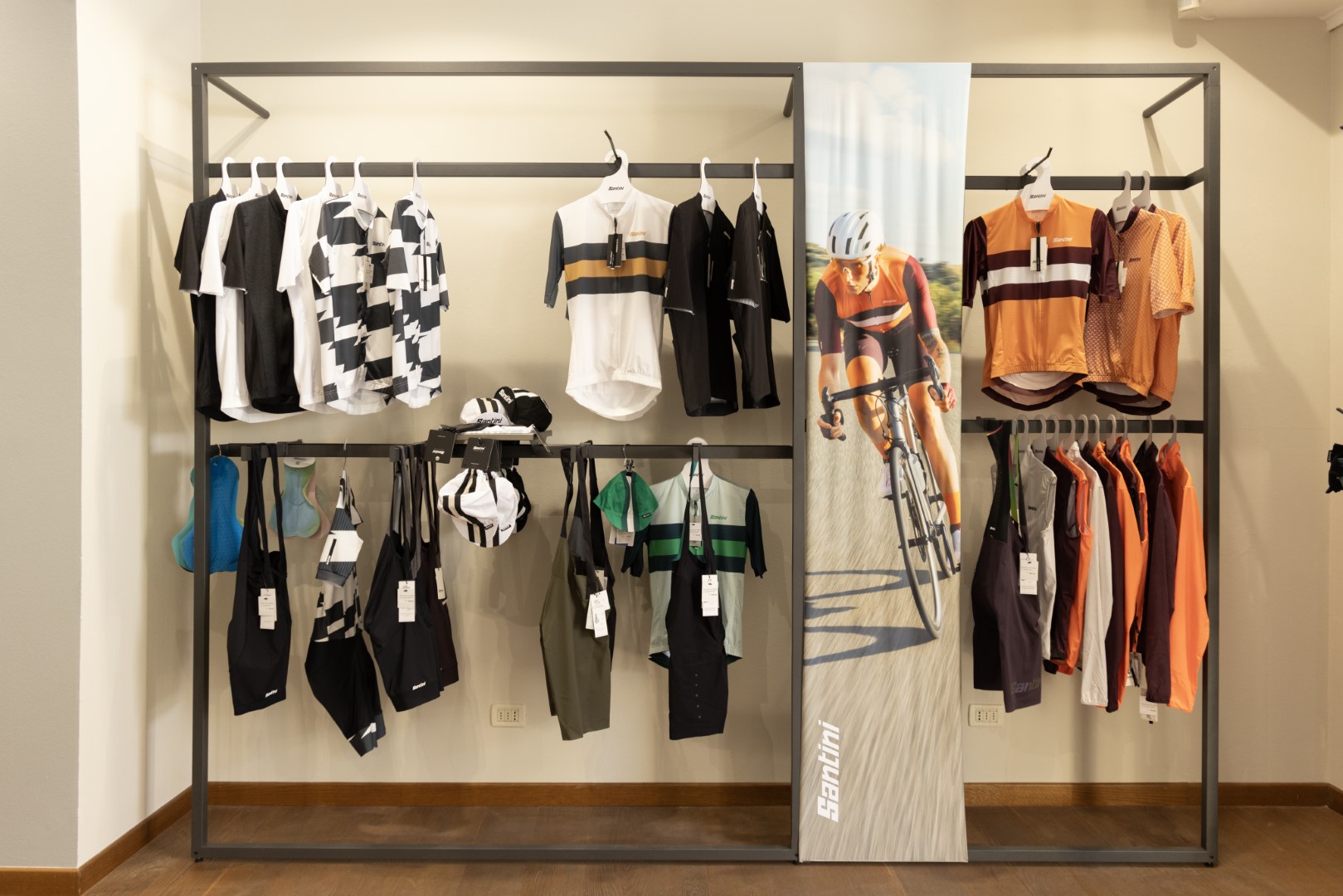 The store opened on Saturday, May 4th, providing cycling enthusiasts with a unique opportunity to explore Santini’s extensive range of technical cycling clothing displayed on ALU’s TondoQuadro wall-mounted and freestanding units.