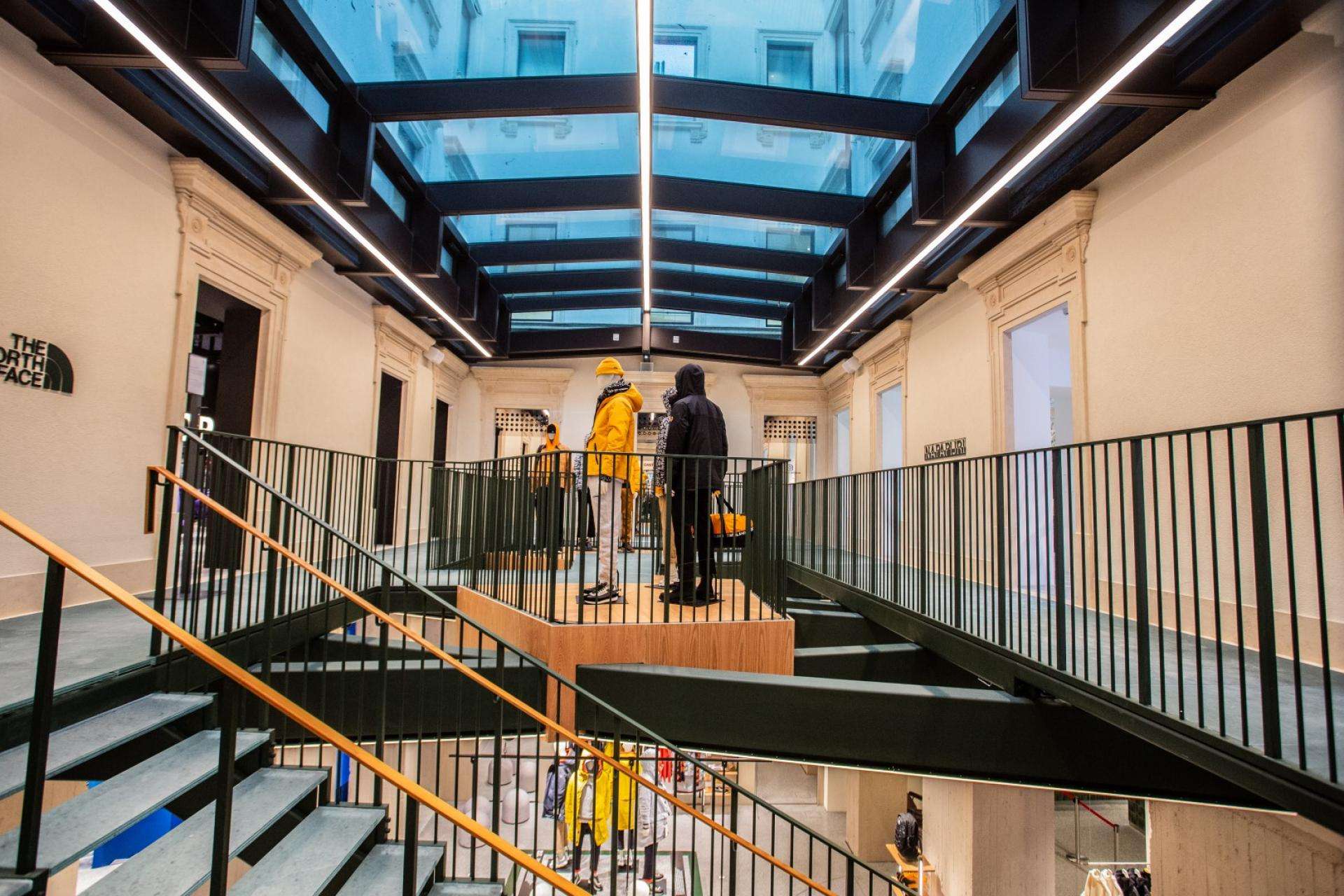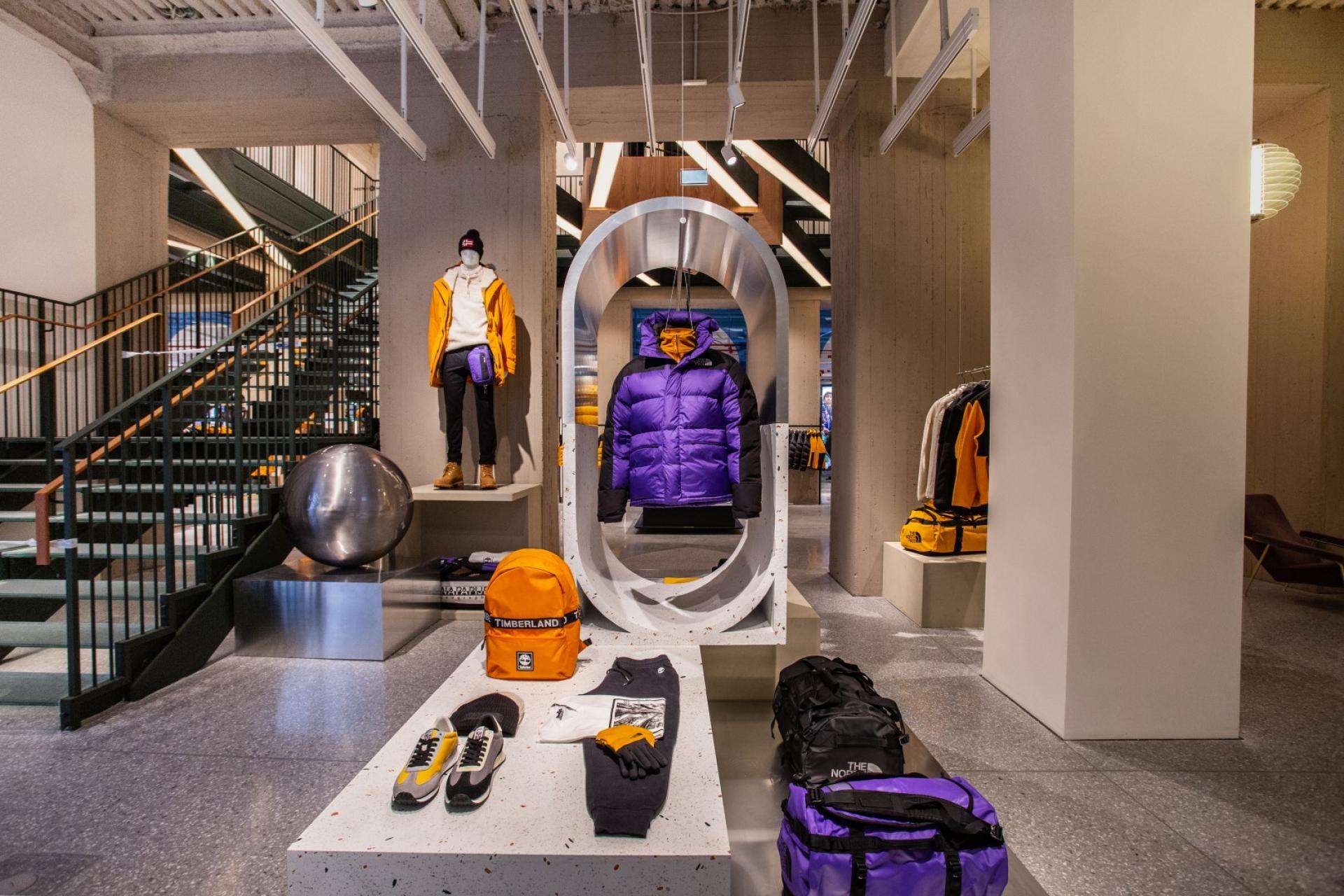We are proud to have partnered with the VF Corporation on their new store that opened on November 30th, 2020, in via Orefici 11 in Milan. This is not a regular store for them, it’s their first multi-brand store. This 22,000sqft space is 3 floors and features collections from a variety of brands under the VF Corporation umbrella such as Napapijri, Timberland and The North Face. They’ve dedicated one floor to a more experiential approach for displaying exclusive VF Corp collaborations, which they’ve named the LAB. The other two floors are dedicated to a few different concepts relating to each of their brands.
