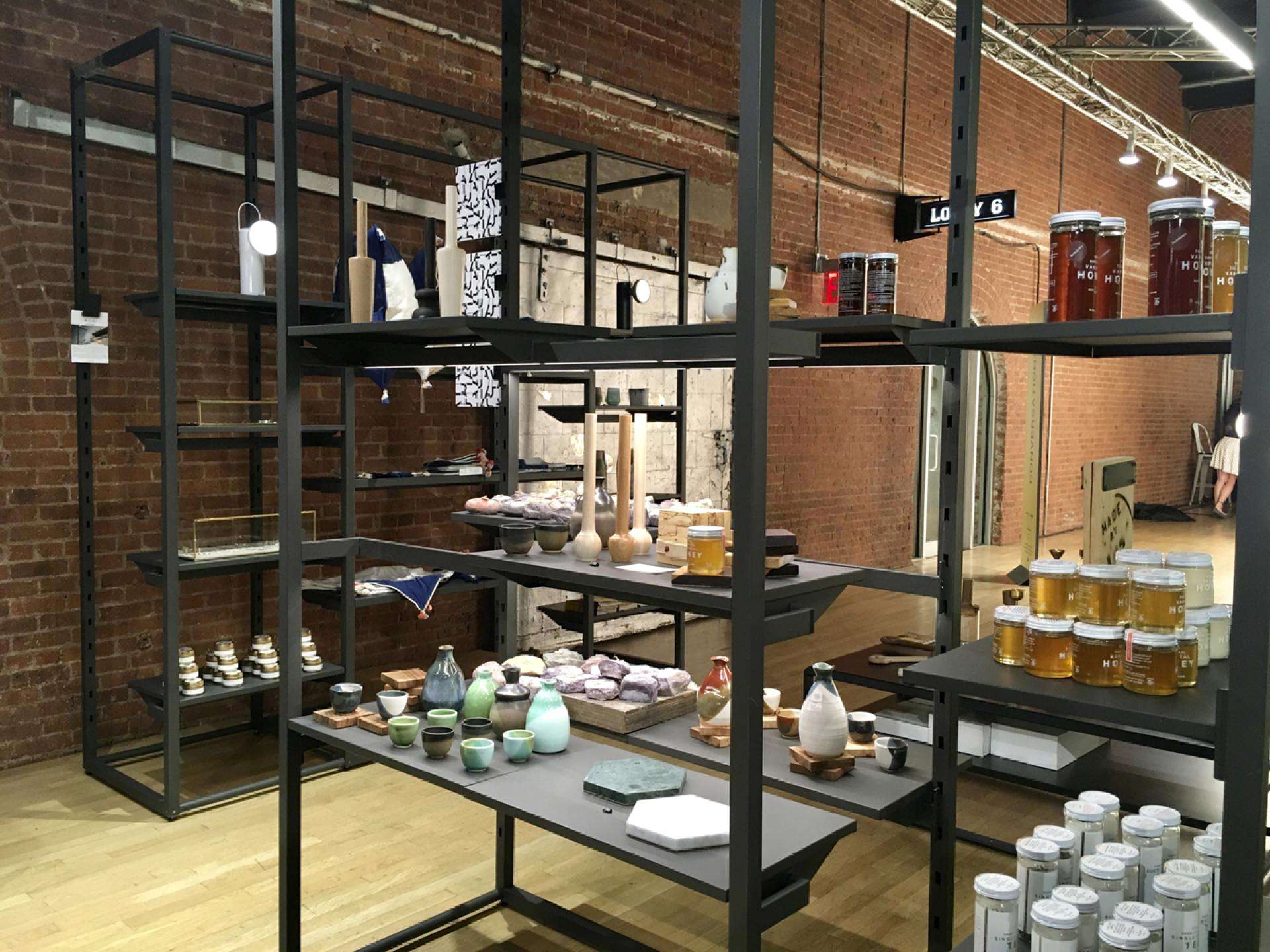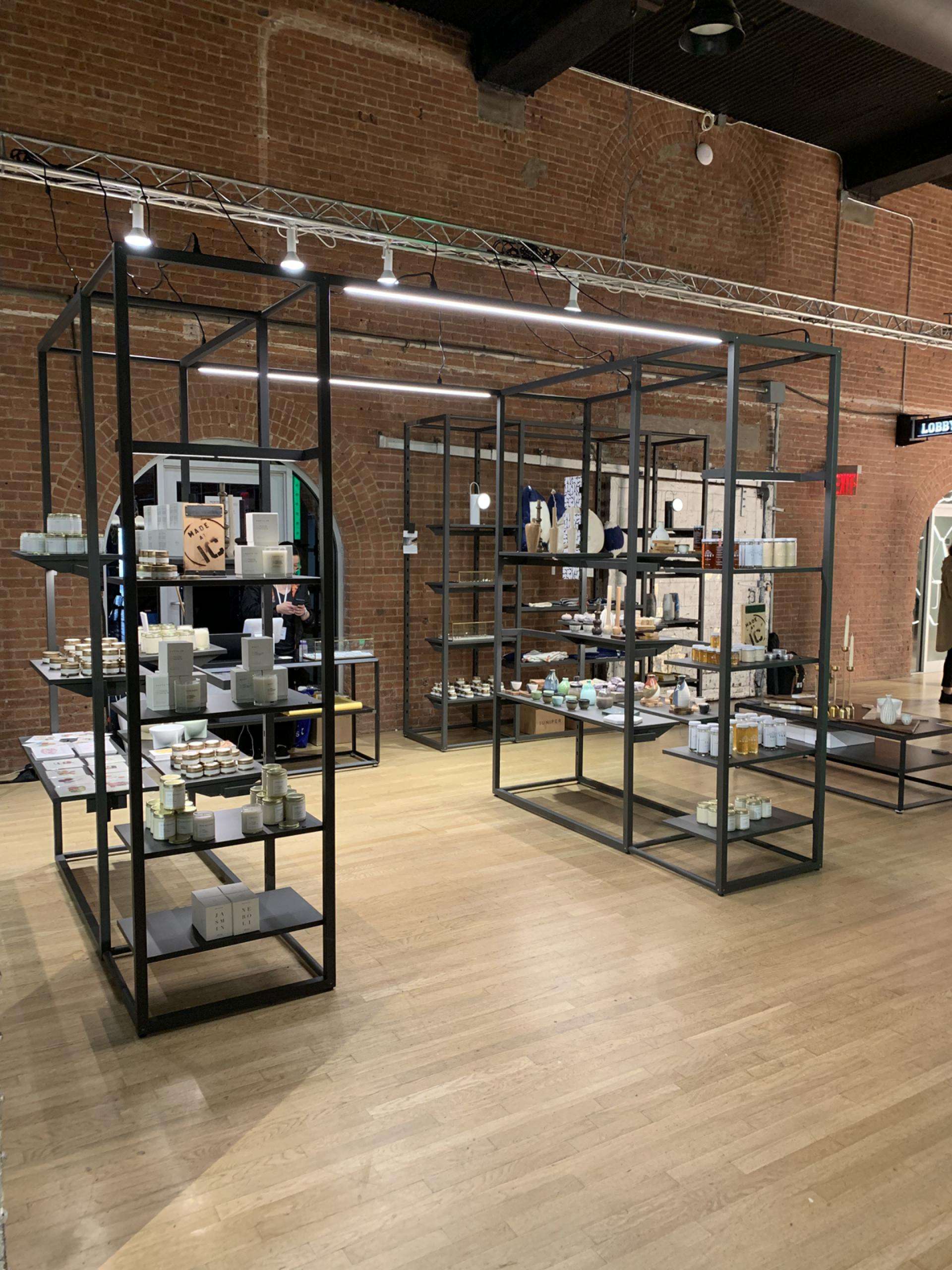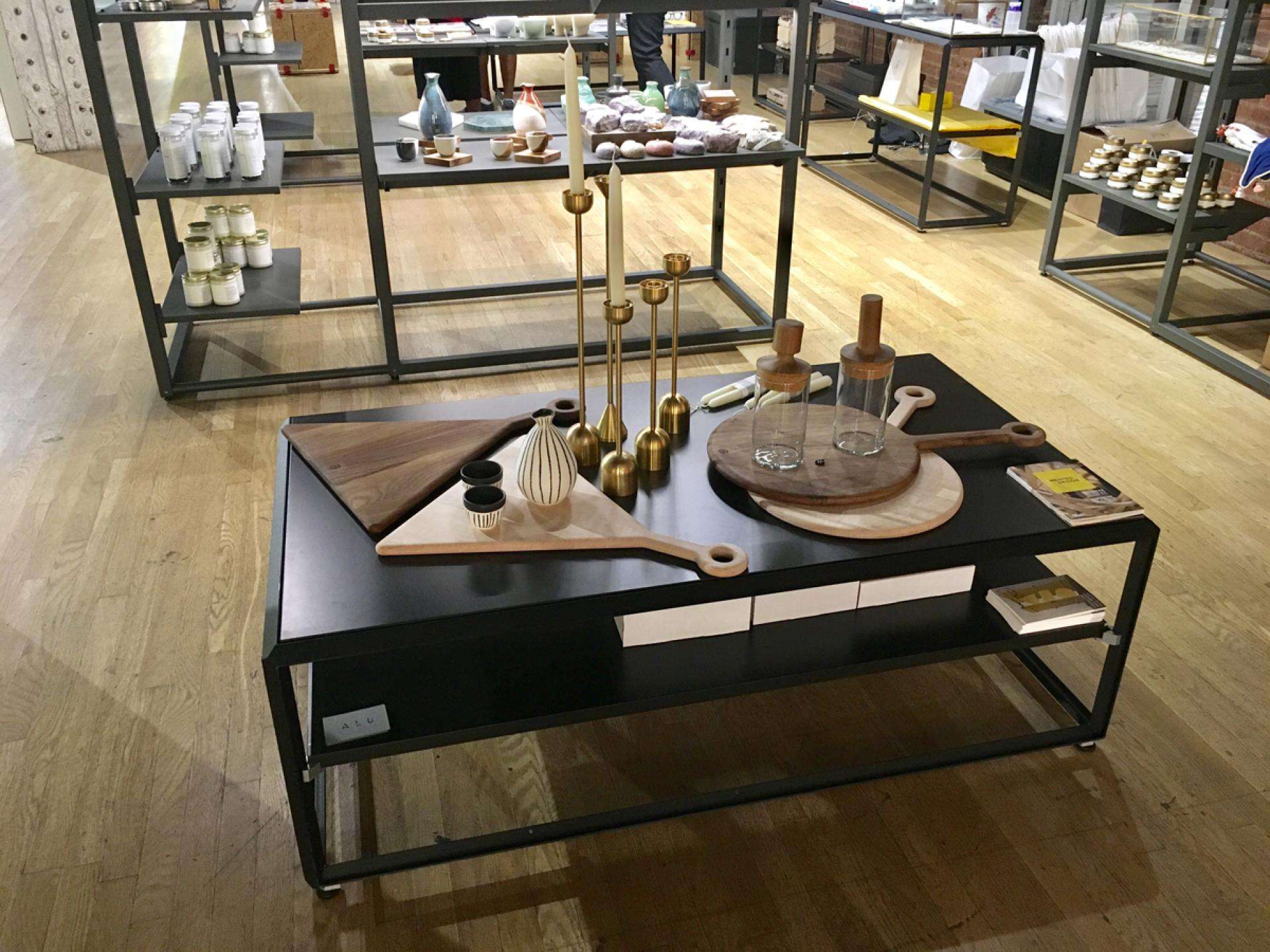 During this year’s NYCxDesign Week, WantedDesign took a #walkwithALU in their Manhattan pop-up store. For this collaboration, ALU provided TondoQuadro, TondoQuadro Illuminated and Cage fixtures to be exhibited and merchandised for the space. From home goods to honey, WantedDesign used unique merchandising arrangements and interpreted ALU systems in new ways, as can be seen with Cage in its role as a cashier’s desk. Perfect for pop-ups, ALU’s systems are versatile and adaptable, and can be reconfigured to provide endless display solutions for merchandise and graphics.