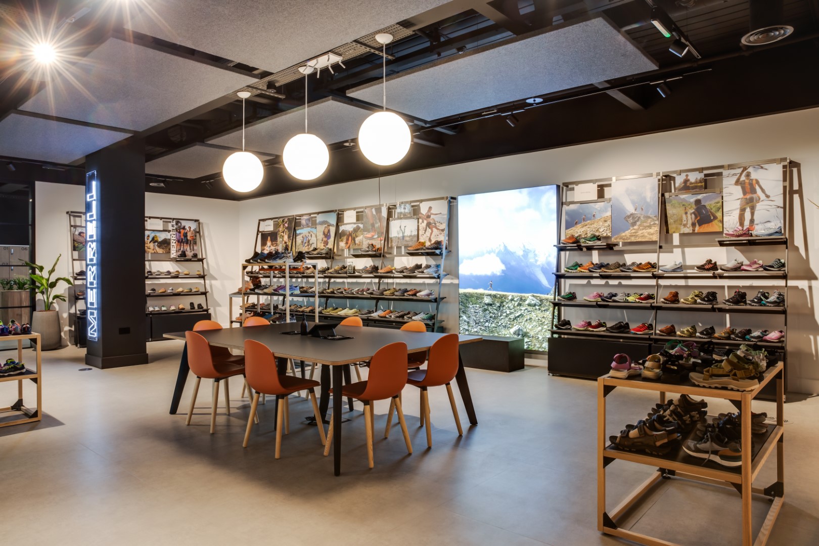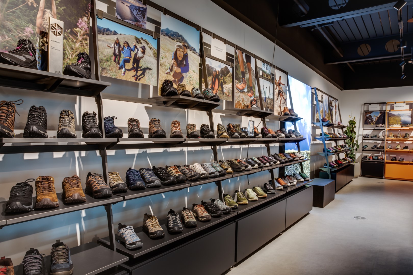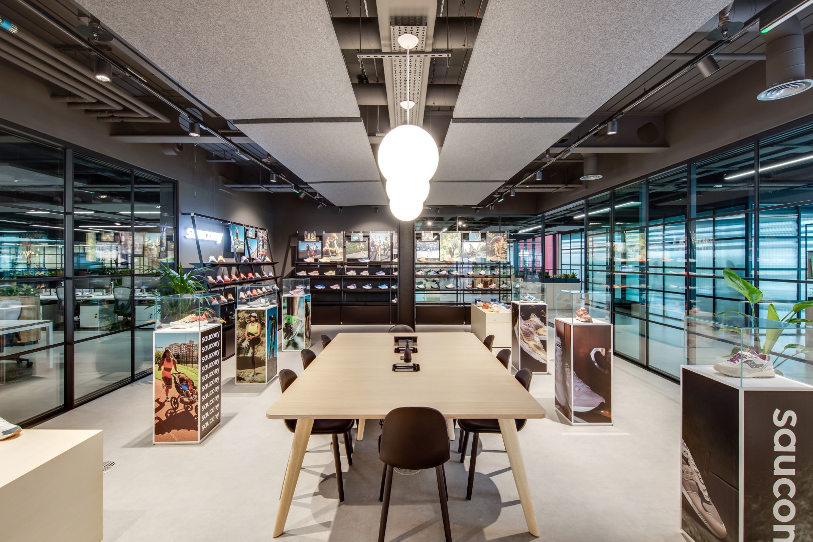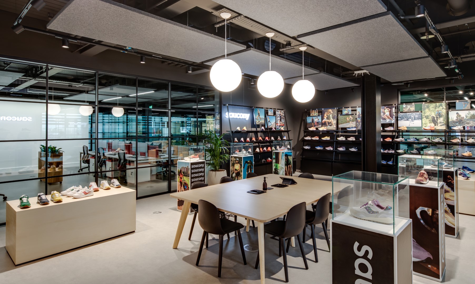 Showcasing Wolverine’s esteemed brands, including Merrell, Saucony, and Caterpillar, the space features both freestanding and wall-mounted Slash units, providing an immersive experience for clients and partners.